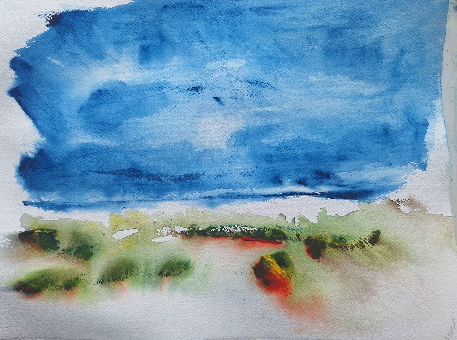 A delicate interplay of atmosphere and land, Earthbound Blue Mist captures layers of soft blue haze settling gently across the horizon. The painting translates the calm whispers of sky into grounding forms on earth, inviting quiet reflection and introspection. Created on premium 180lb fine art paper, the substantial surface enhances pigment depth, allowing nuanced washes and textures to emerge with clarity and presence. Each work is a singular expression of mood and place, designed for collectors who value authenticity, refinement, and lasting resonance.